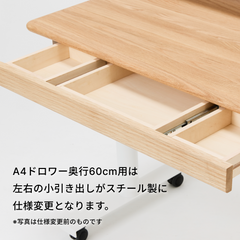 オプションで追加できる、A4のクリアファイルが収納できる天板下の引き出し収納。後付け可能な設計なので、必要を感じてからの追加購入も可能です。 ※画像は奥行70cm用 ※仕様は変更となる場合があります。