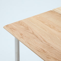 オーク天板の脚には、ステンレススチールを採用。美しさと耐久性を兼ね備えたマテリアルが、ワークスペースに洗練をもたらします。