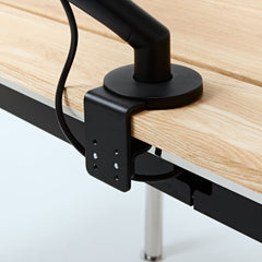 天板後部の固定天板は、様々な市販のモニターアームに適合。ケーブルストレージ背面には配線用の開口があるため、極限まで見えないルートで配線が可能です。
