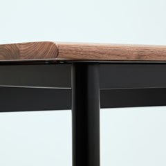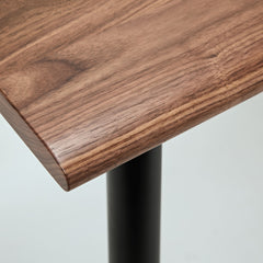 ウォールナット天板の脚には、マットブラックスチールを採用。インダストリアルな質感が、デスクの機能美を際立てます。